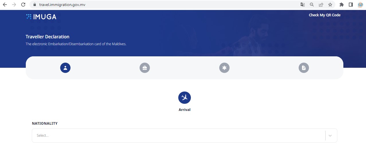 Декларация заполняется онлайн на английском языке, отдельно на каждого туриста, на сайте миграционной службы Мальдивских островов: https://travel.immigration.gov.mv/.